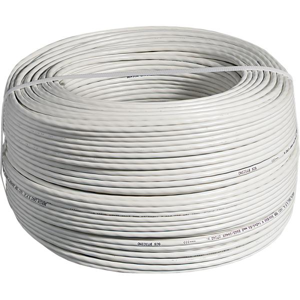 Cable de conexión par trenzado de dos conductores multifilar, no blindados, 2x0,5mm², aislamiento 450/750V color blanco para videoportero y difusión de sonido. También se puede utilizar para auBasetismos (luces/persianas), gestión de la temperatura, medición y visualización de los consumos, gestión de energía y alarma de intrusión, se puede enterrar bajo los conductos. Corona de 200 metros. Cumple las normas IEC 20-13 y IEC 20-14.