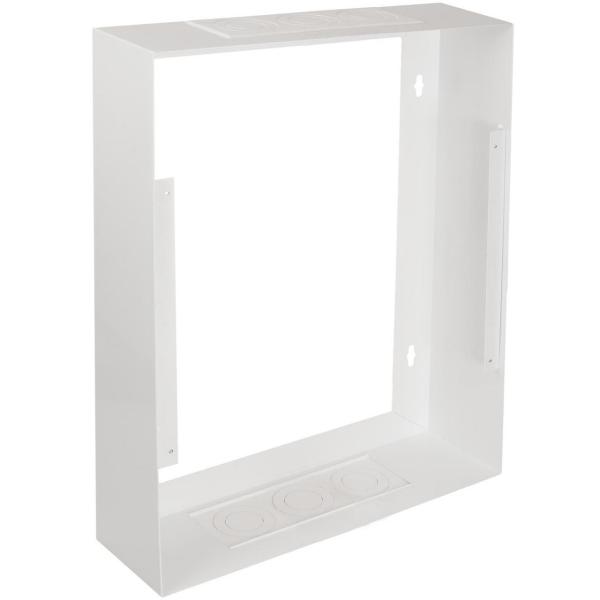 Marco metálico para montar en superficie la caja MP28 y versiones. Dimensiones 362 x 462 x 105 mm. Chapa de acero DX-51 laminada en frio. Espesor 1 mm. Pintura poliéster polimerizado a 180ºC color blanco.