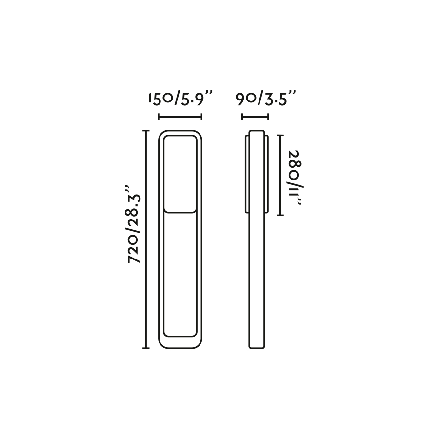 Lámpara de baliza gris oscuro Sticker, una serie de iluminación exterior diseñada por Lúcid. Esta baliza se caracteriza por las líneas rectas ligeramente redondeadas en los bordes y un difusor que proyecta una luz LED cálida. Fuente de alimentación integrada.