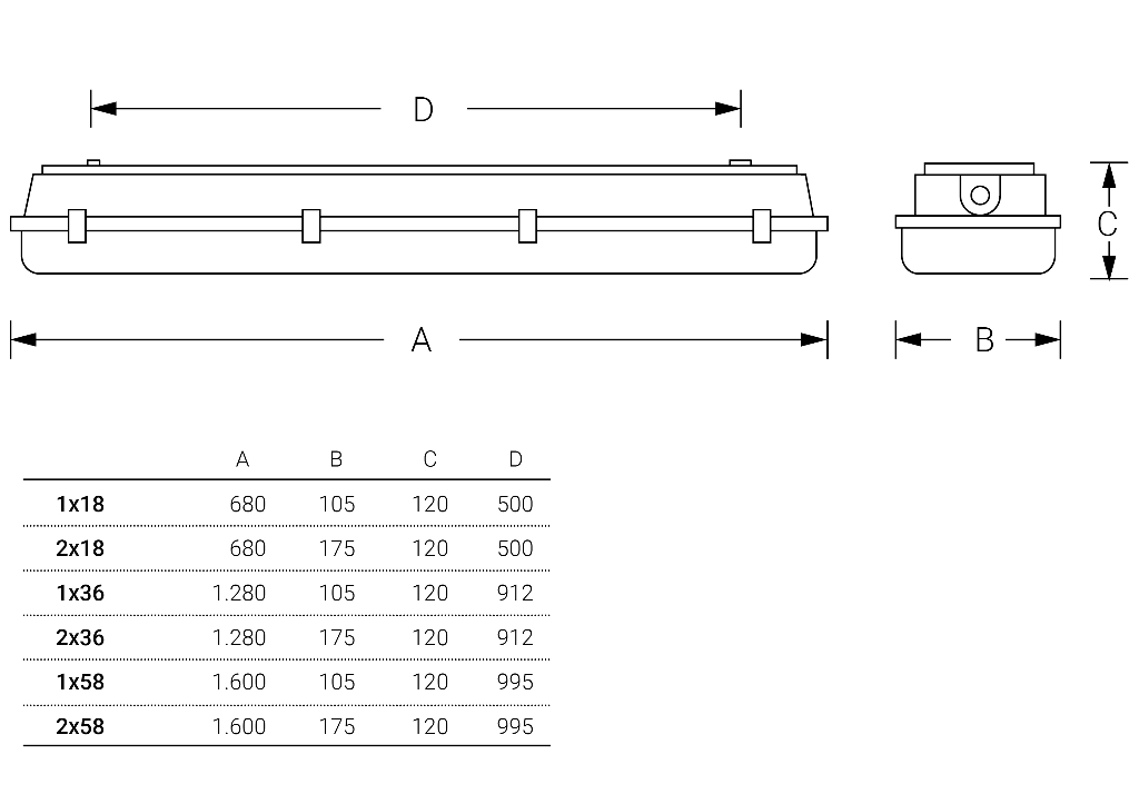PANTALLA ESTANCA AUTÓNOMA 1x58W 936lm PERMANENTE + EMERGENCIA GRIS
