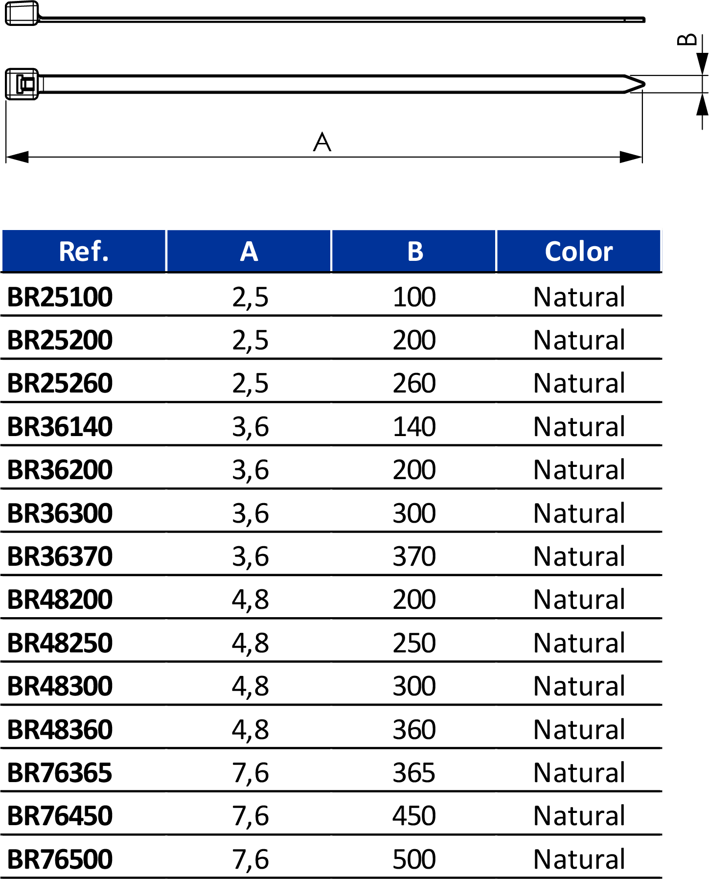 Brida de nylon de color natural para fijación de tubos y cables, alta resistencia a la tracción, 3,6x200mm.