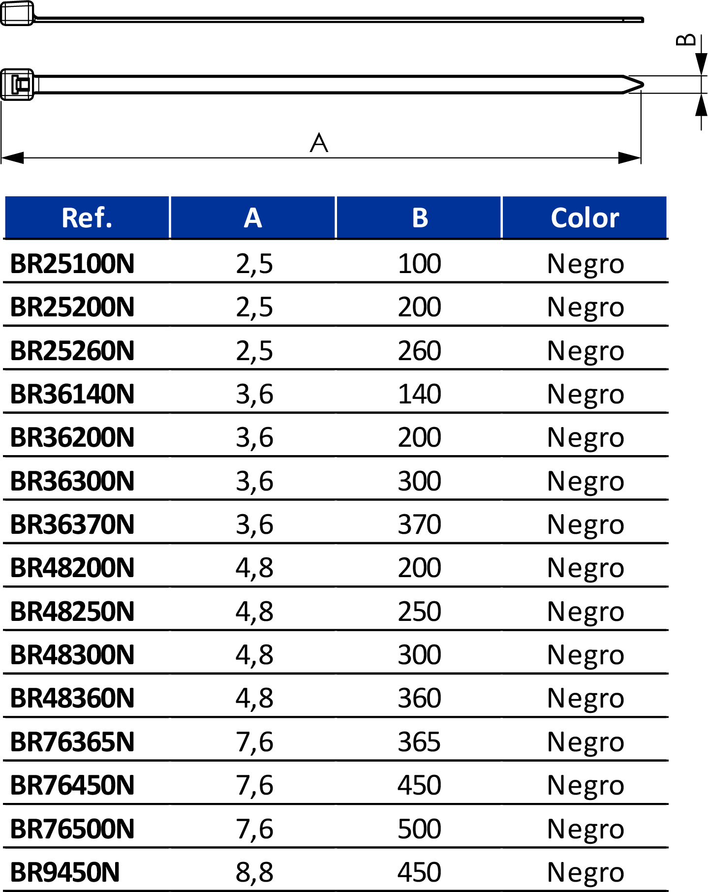 - Gama: Bridas y fijaciones