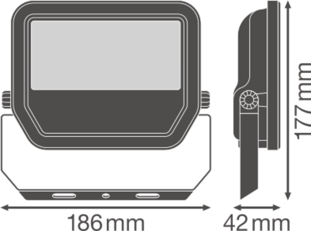 Proyector versátil con una salida de luz de hasta 3600 lm. Características del producto: Distribución de luz simétrica basada en reflector con ángulo de apertura de 100° x 100°. Driver con amplia tensión de entrada, adecuado para 100 - 277 V<sub>AC</sub>. Protección contra sobretensiones: hasta 4 kV (L / N-PE), 2 kV (L-N). Soporte de montaje con ángulo de 30° y área de rotación amplia. Cable preinstalado, flexible de 1 m (H05RN-F), con 3 x 1.0 mm² de cables individuales. Beneficios del producto: Luminoso, robusto y duradero. Iluminación segura y muy uniforme, gracias al difusor de cristal esmerilado y templado.. Sin salida de luz superior (ULOR 0%) cuando se monta a 0° de inclinación. Ahorro energético de hasta 90% en comparación con los proyectores halógenos. 5 años de garantía. Áreas de aplicación: Sustituto para proyectores con lámparas halógenas. Uso exterior (IP65). Áreas públicas. Construcción de fachadas. Areas de construcción. Jardines, balcones y otros espacios exteriores.