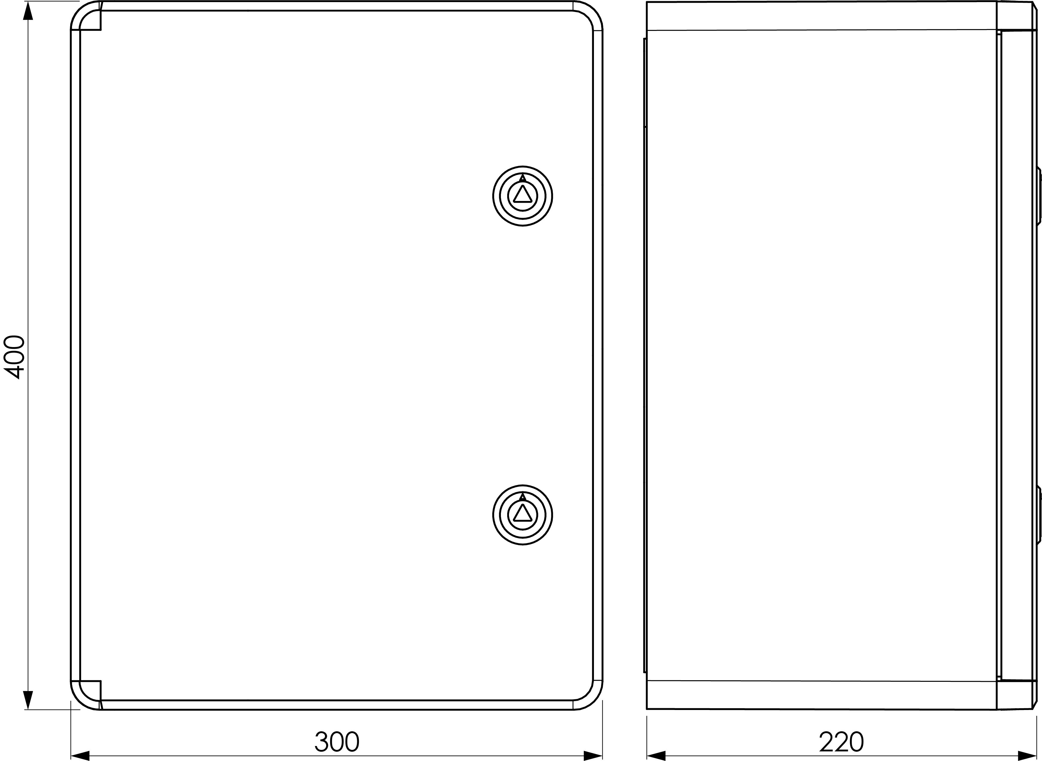 Armario estanco termoplástico. Puerta lisa (transparente). Dimensiones exteriores 300x400x220. Con placa metálica. IP65. IK10. Protección UV.